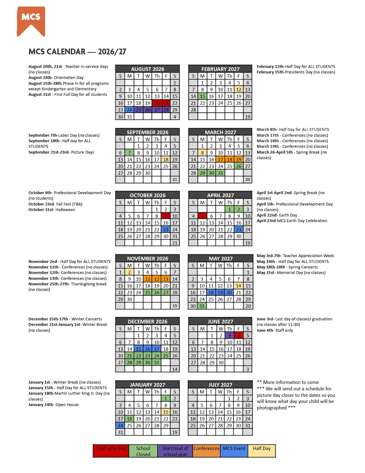 MCS 2026/27 SCHOOL YEAR